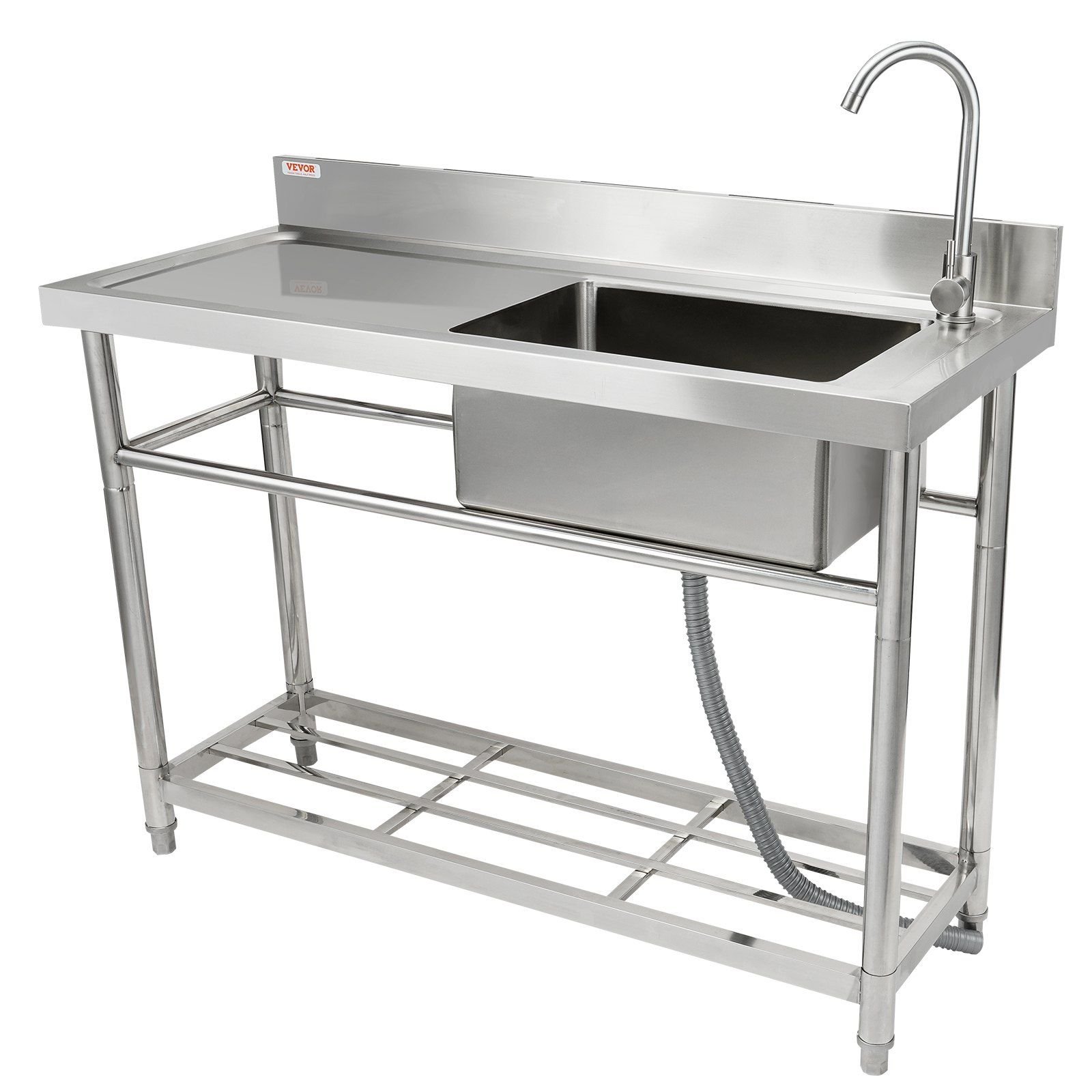 1.Stainless Steel Sink: Crafted with high-quality stainless steel for its excellent corrosion resistance, oxidation resistance, and durability. The all-metal construction ensures a longer lifespan in most environments. The adjustable legs ensure stability even on uneven surfaces.