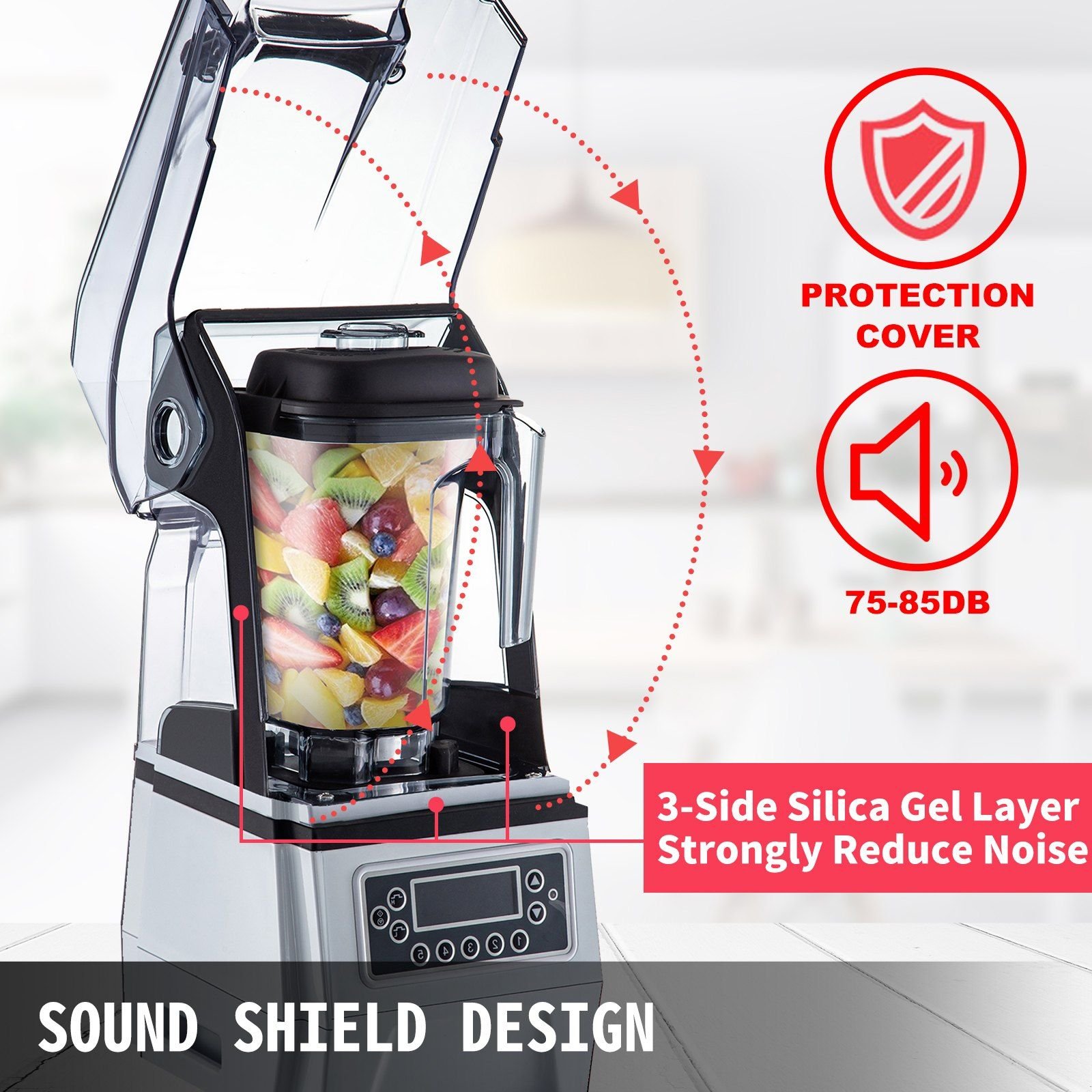 With the specialized sound shield and 3-side silica gel soundproof layer, you can operate your commercial blender at a significantly reduced volume (75-85 dB). The blender will only work when the sound enclosure is closed.