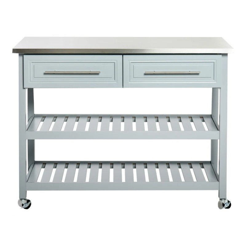 Light Gray Rolling Kitchen Island 2 Drawers Storage with Stainless Steel Top Light Gray Rolling Kitchen Island 2 Drawers Storage with Stainless Steel Top Light Gray Rolling Kitchen Island 2 Drawers Storage with Stainless Steel Top Light Gray Rolling Kitchen Island 2 Drawers Storage with Stainless Steel Top