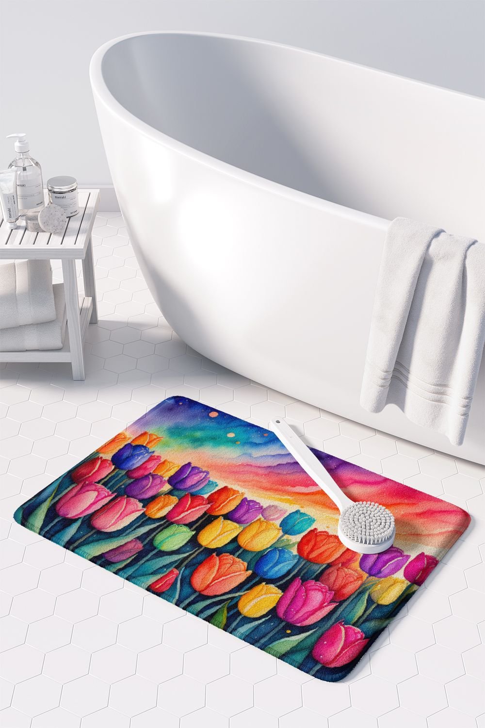 Tulips in Color Memory Foam Kitchen Mat Machine Washable Anti-Fatigue Mat Cushion Comfort Bath Mat or Kitchen Rug