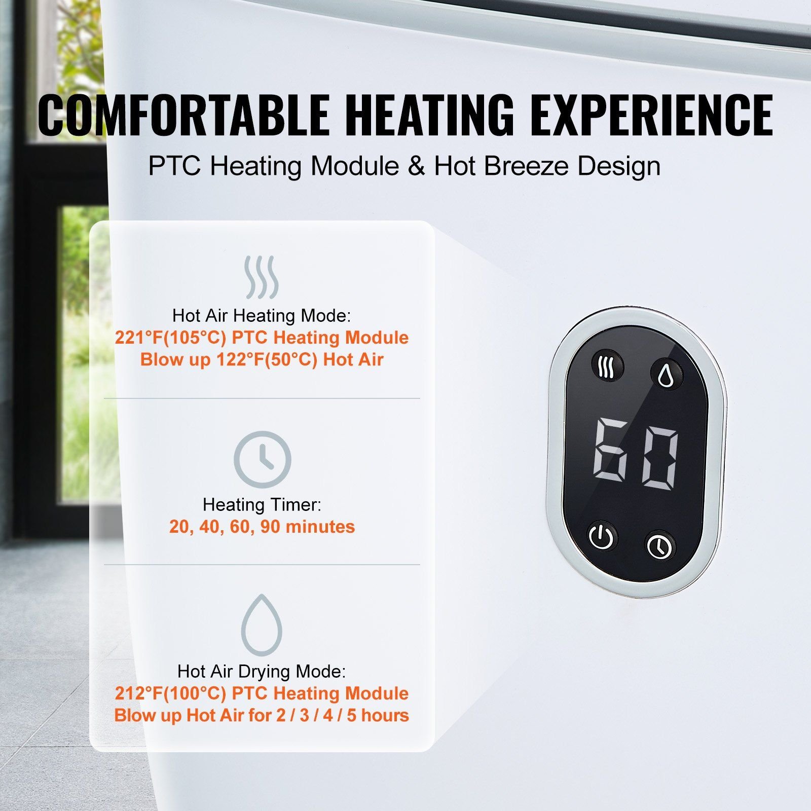 3.Powerful Drying: It includes 4 timing drying functions (2/3/4/5 hours), suitable not only for towels but also for drying damp clothing, ensuring every use provides a dry and clean experience.
