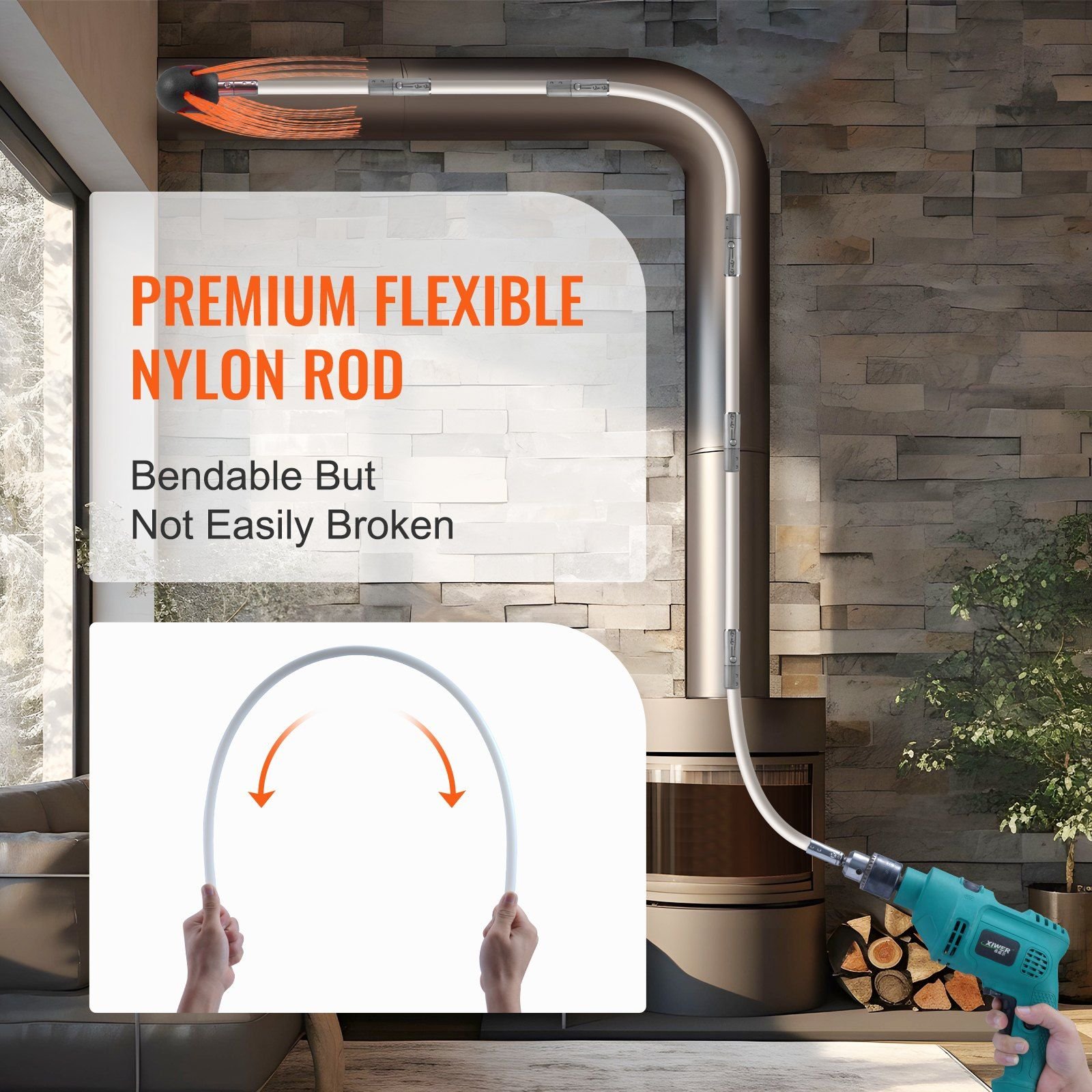 The chimney rods are made of high-quality nylon, offering great flexibility to navigate through those tough chimney bends for effective cleaning.