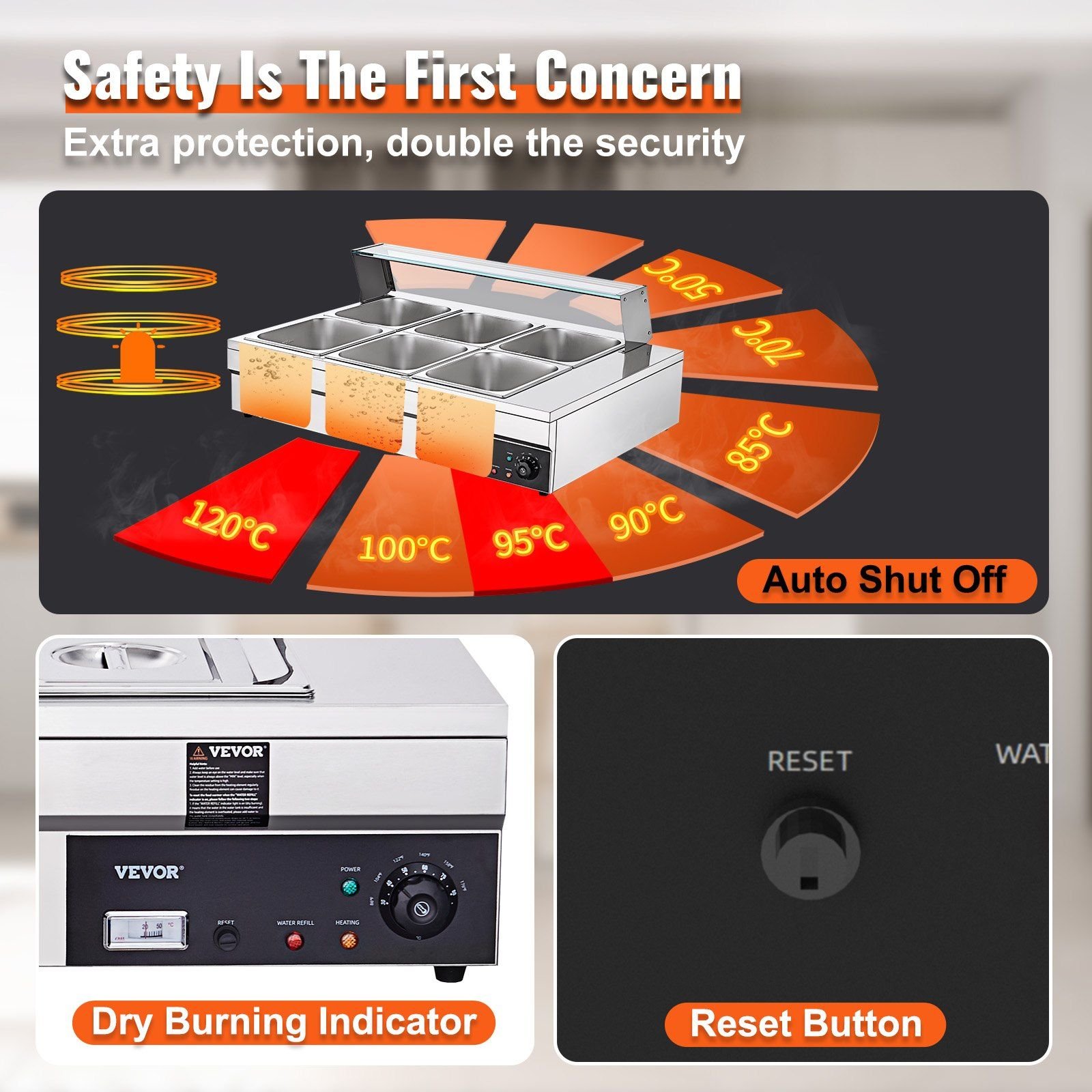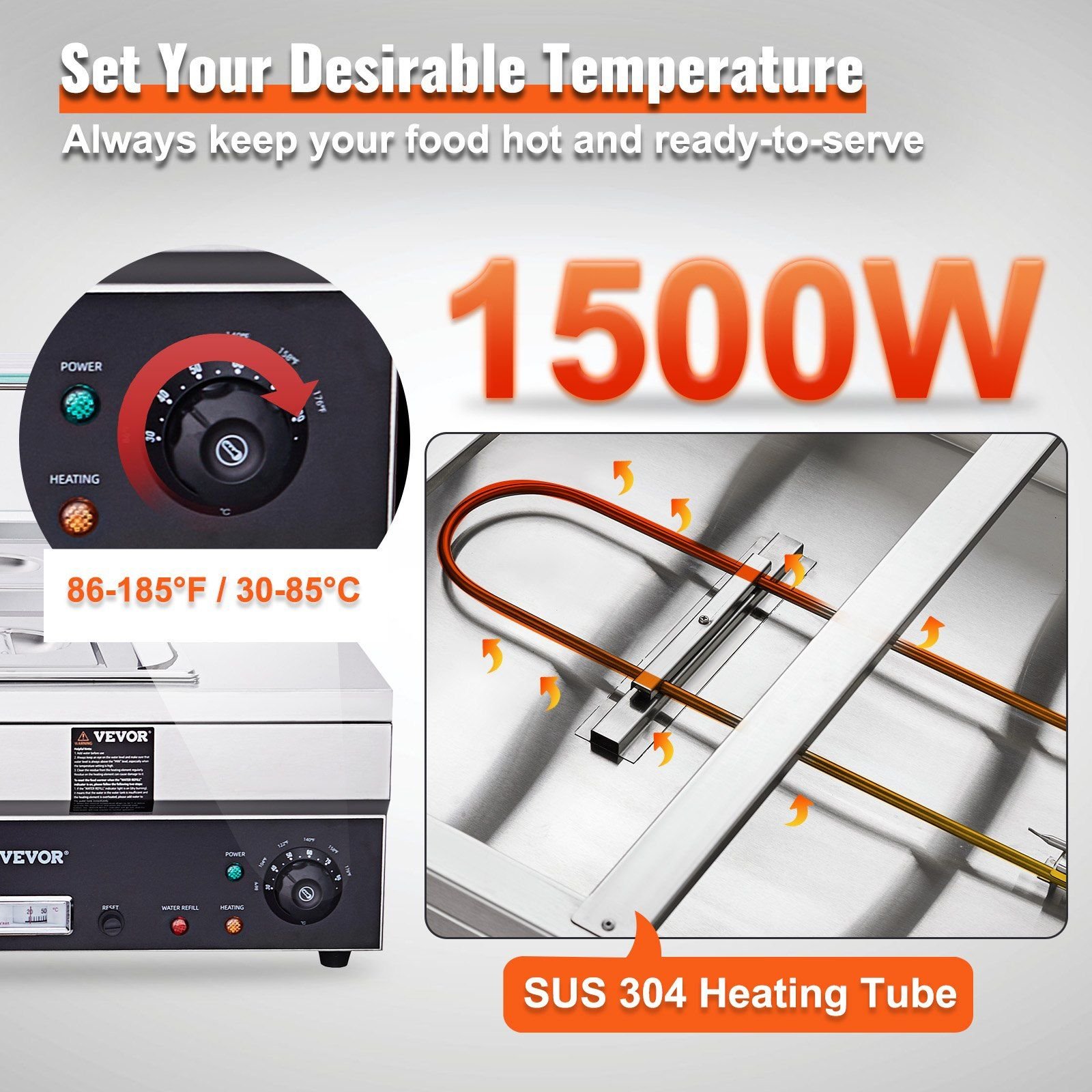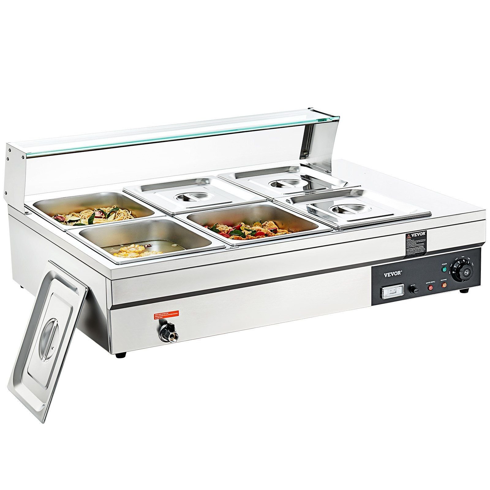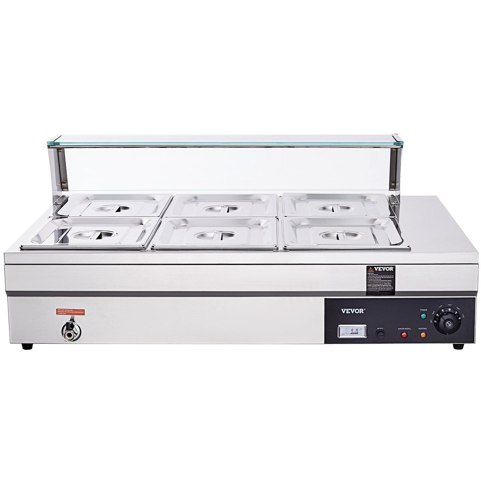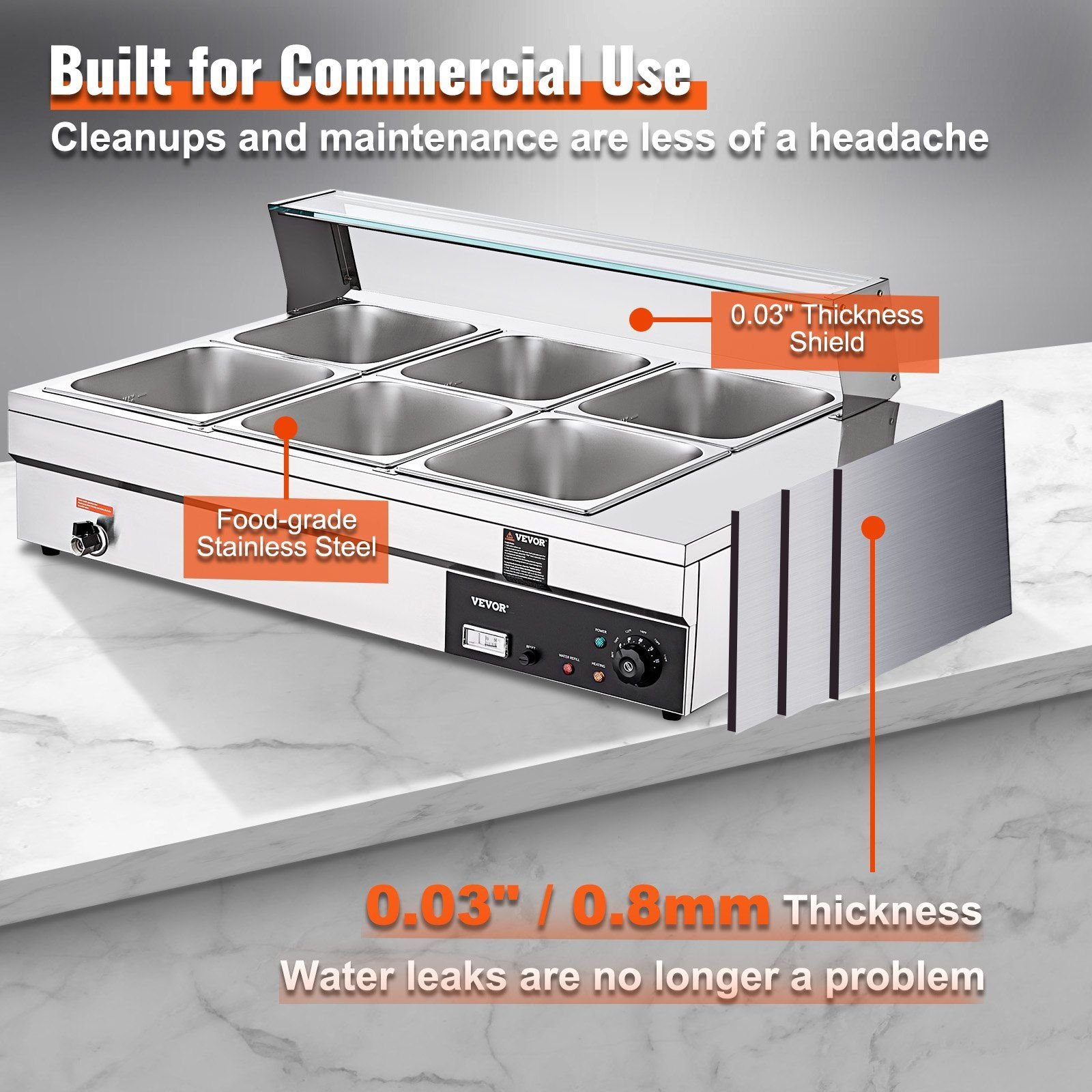 Home > VEVOR 6-Pan Commercial Food Warmer, 6 x 12QT Electric Steam Table with Tempered Glass Cover