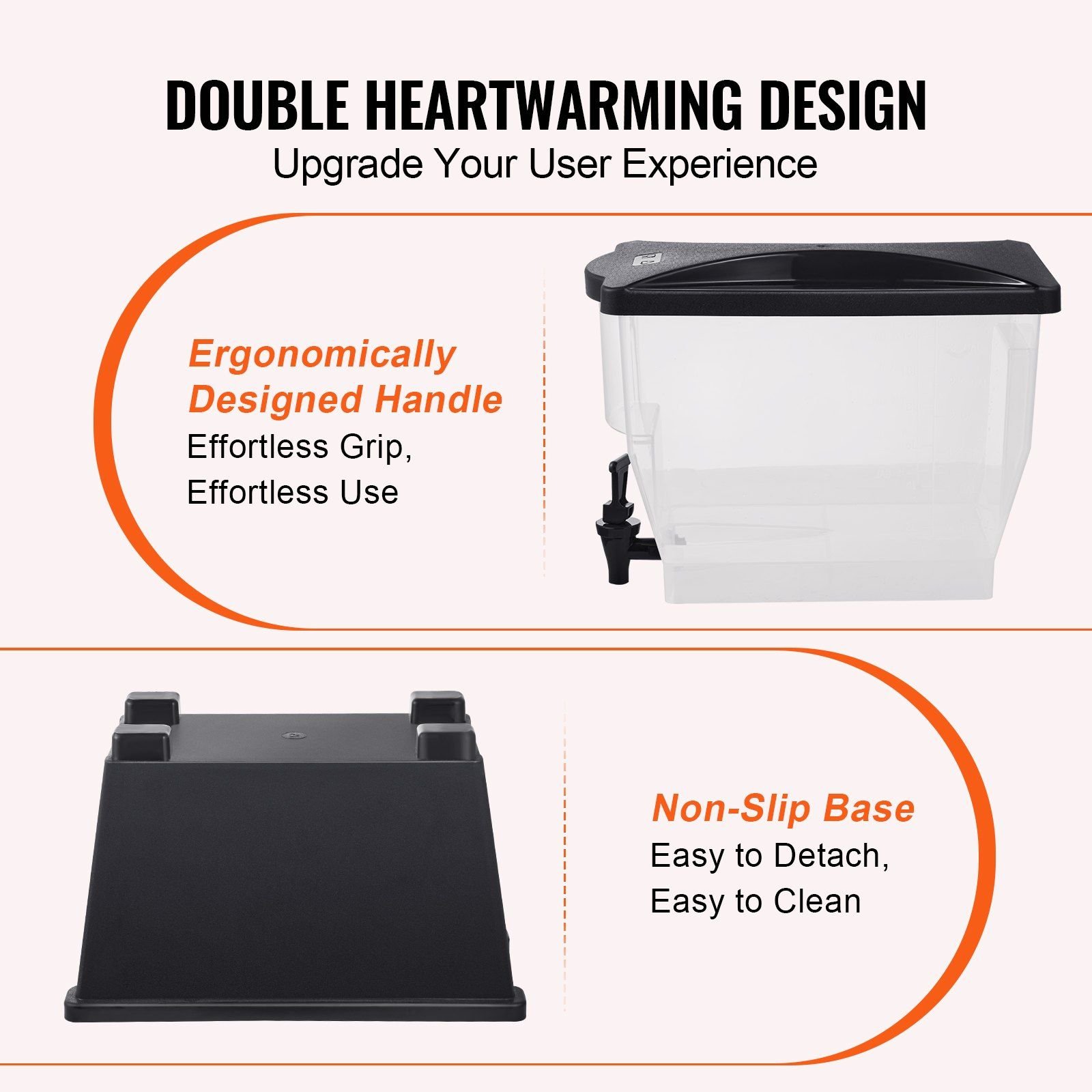 Our beverage dispenser is equipped with a dust-proof lid, non-slip base, and stain-resistant PP beverage box. These components are all designed for easy disassembly, allowing you to thoroughly clean and maintain them with convenience.