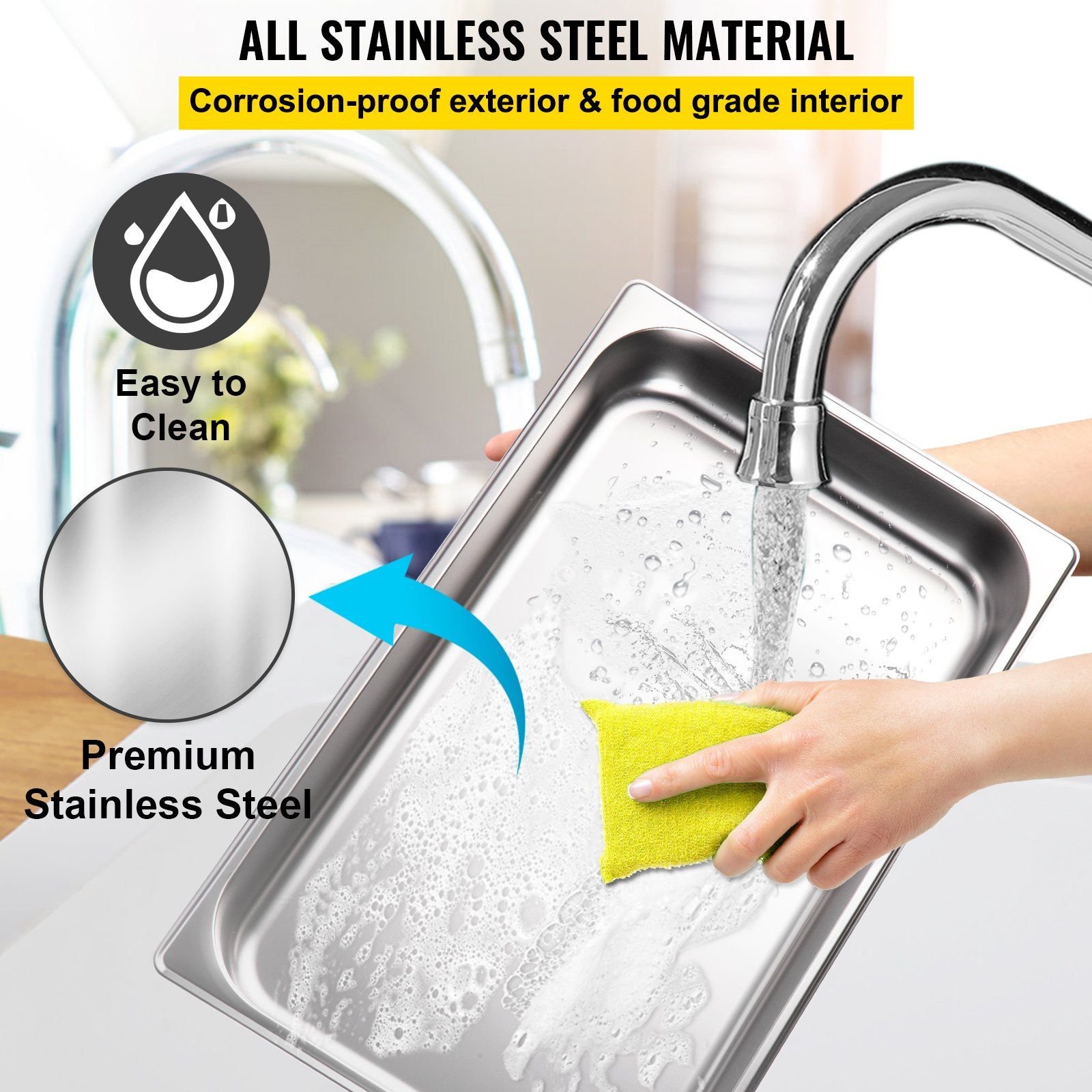 4.Food-grade Stainless Steel: Made of food-grade stainless steel, this steam table food warmer is strong, durable, and rust-resistant. The detachable pan makes cleaning and maintenance a breeze.