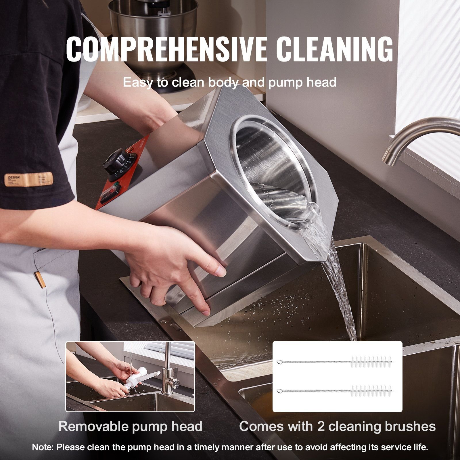 The entire body of the sauce warmer is made of food-grade material. Its separated food and water tank design, combined with a detachable pump head, makes comprehensive cleaning simple.
