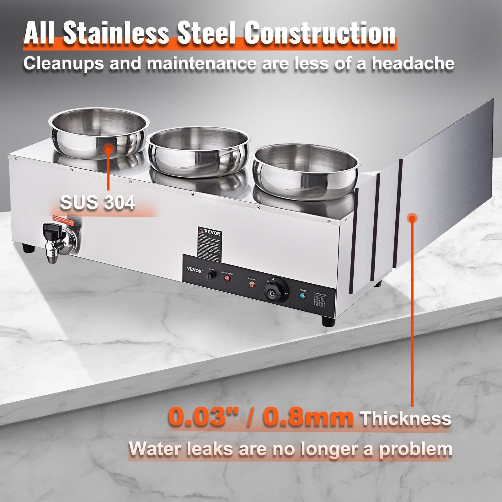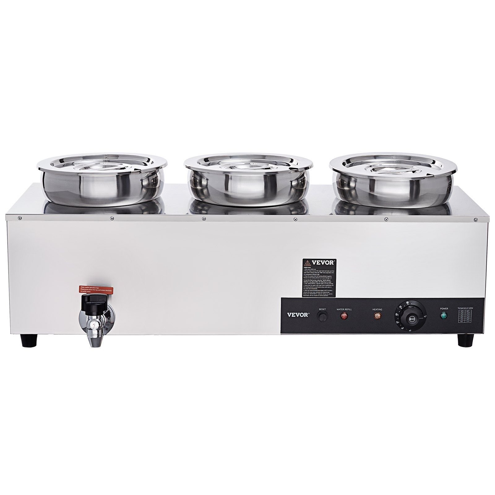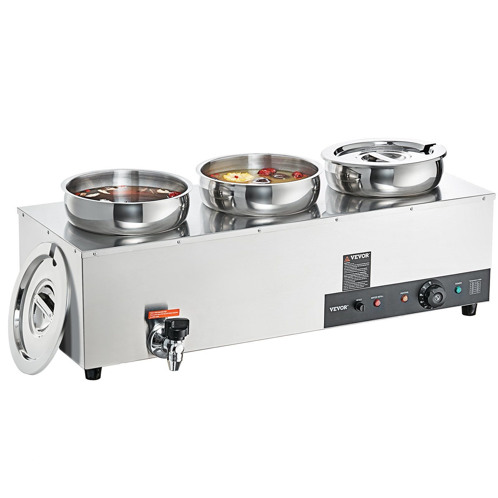 Home > VEVOR Electric Soup Warmer, Three 7.4QT Stainless Steel Round Pot 86~185°F Adjustable Temp
