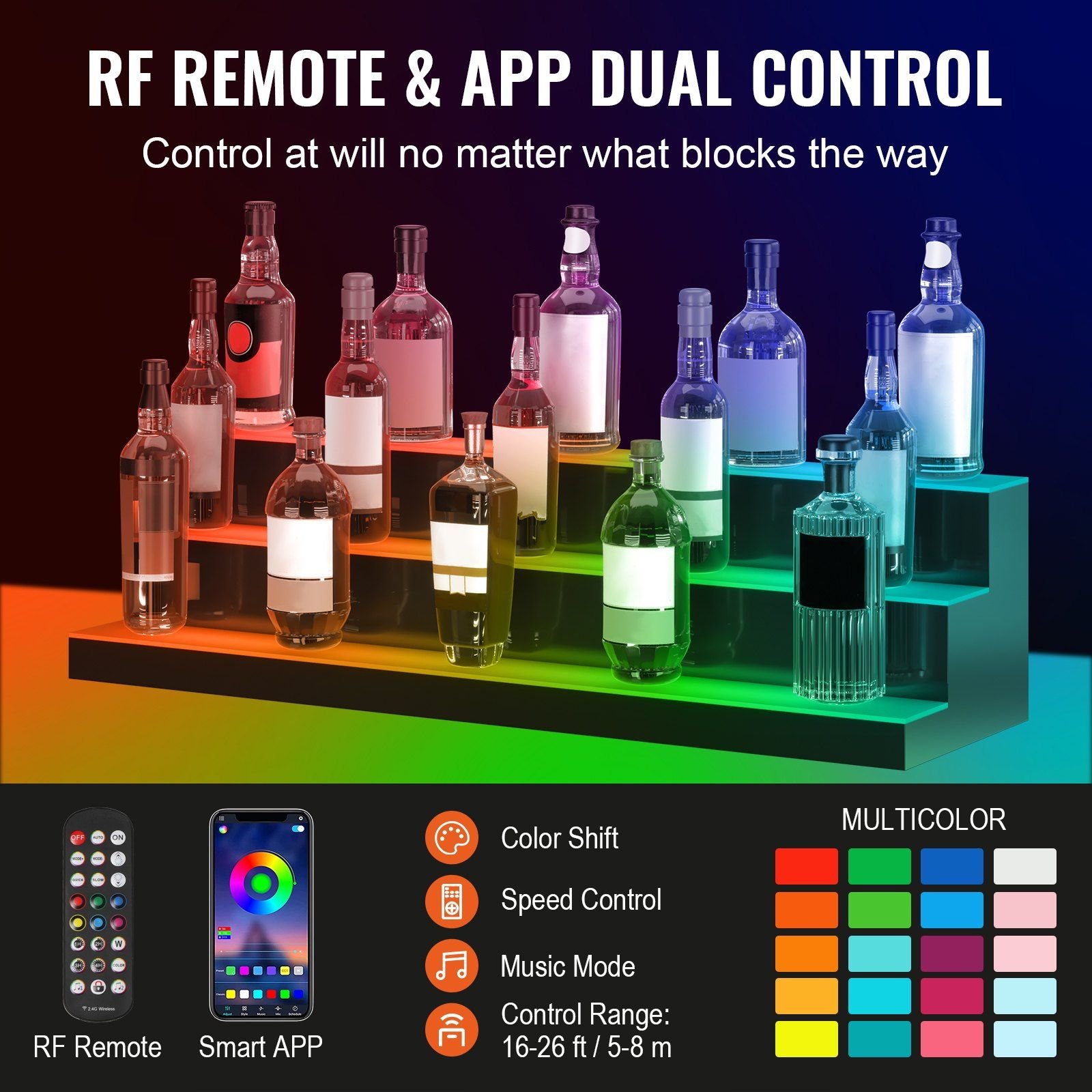 Home > VEVOR LED Lighted Liquor Bottle Display, 3 Tiers 40 Inches, Illuminated Home Bar Shelf with RF Remote & App Control 7 Static Colors 1-4 H Timing