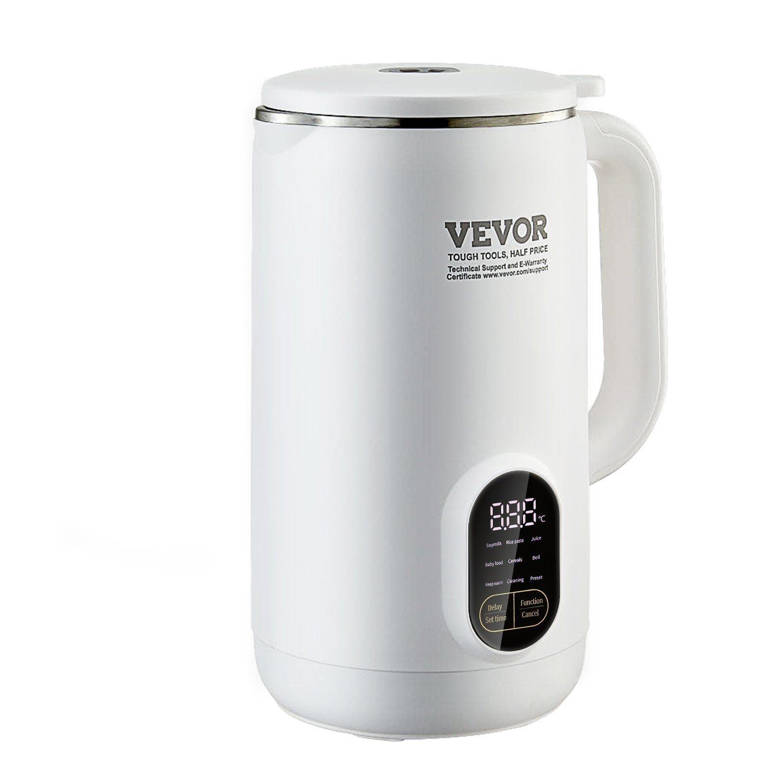 1.9-in-1 Versatile Nut Milk Maker: VEVOR nut milk maker boasts 800ml large capacity that serves up to 4 people. It features one touch smart LCD screen, unlocking diverse pure, homemade, and plant-based hot/cold drinks, including nut milk, fruit juice, rice paste, baby food and more.