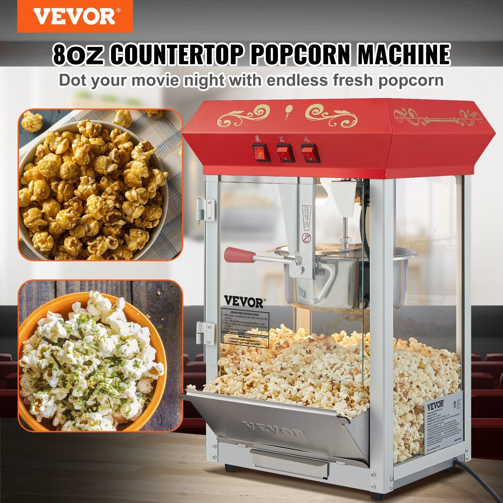VEVOR Popcorn Popper Machine 8 Oz Countertop Popcorn Maker 850W 48 Cups Red